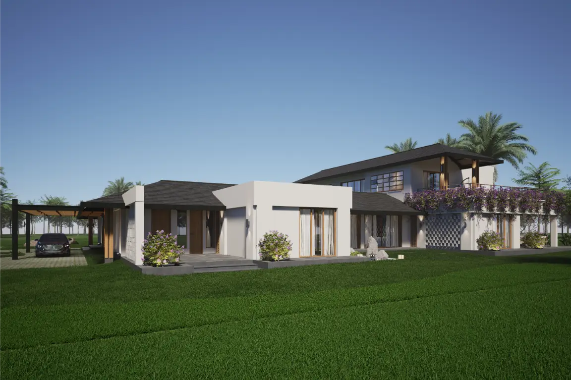 Conceived as a personal tropical retreat, this villa reflects the client’s desire to recreate the spirit and character of their favourite holiday destination—Bali. The design draws inspiration from Indo-Balinese architecture, blending open planning, natural materials, and a strong connection to landscape.